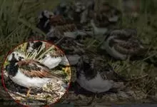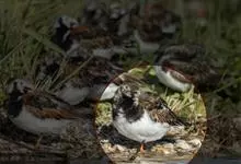 翻石鹬:体重82-135克,体长180-240毫米。体型高矮兼称,看起来十分的滑稽。它们在繁殖季时体色非常醒目,由栗色、白色和黑色交杂而成,嘴短,黑色,脚橙红色。到了冬天,翻石鹬身上的栗红色就会消失,…全部>>