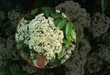 石楠 Kalkman),是蔷薇科石楠属的常绿乔木,高5~12米,株型紧凑,树冠圆球形。树枝为褐灰色;鳞片为褐色,没有毛;叶片革质,长椭圆至侧卵状椭圆形,有锯齿,新叶红色光亮。复伞房花序,白色小花,…全部>>