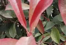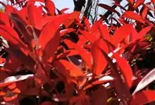红叶石楠 是蔷薇科,石楠属杂交种,为常绿小乔木或灌木,乔木高可达5米、灌木高可达2米。叶片革质,长圆形至倒卵状、披针形,叶端渐尖,叶基楔形,叶缘有带腺的锯齿,花多而密,复伞房花序,花白色,梨果黄红色,…全部>>
