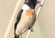 黑喉石鵖,雀形目鹟科石鵖属小型鸣禽,俗名谷尾鸟、黑喉石。其体色为黑褐色。雄鸟头部、背部、两翼及尾黑色,颈侧及翼上具白斑,胸部和腹侧红棕色,腰及尾下覆羽白色。雌鸟体色为褐色,上体具深色纵纹,胸部染棕色,…全部>>
