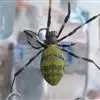 棒络新妇,是蜘蛛目肖蛸科络新妇属节肢动物。雄蛛体长约6毫米,背甲褐色,具黑色纵斑;步足黑色,有橙色环纹;腹部筒形、褐色,有黄斑;雌蛛体长约21毫米,背甲黑色,有大量银色长毛;触肢黄色,步足黑色,…全部>>