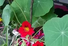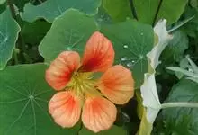 旱金莲是旱金莲科旱金莲属蔓生一年生草本植物。叶互生,叶柄向上扭曲,盾状,叶圆形,具波状浅缺刻,下面疏被毛或有乳点;花黄、紫、桔红或杂色,花托杯状,花瓣为圆形,边缘具缺刻;果实为扁球形;花果期6-10月,…全部>>