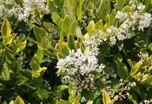 金叶女贞是木樨科女贞属木本植物。叶片为革,椭圆形或卵状椭圆形,新叶金黄色,老叶黄绿色至绿色;花为两性,呈筒状白色小花;果实为椭圆形,内含一粒种子,颜色为黑紫色。花期5—6月,果期10月。…全部>>