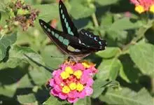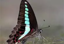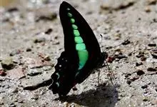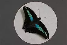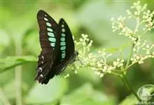 青带凤蝶Graphium sarpedon ,又名青凤蝶,是最普遍的中型凤蝶,飞行速度很快。青带凤蝶的翅膀中央有许多浅蓝色的斑点,很整齐地排列成一条直线。这些斑点由上而下逐渐变大,就像一条青色的带子。全部>>