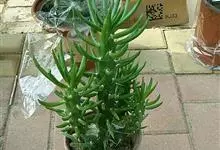 筒叶花月,是景天科青锁龙属的多年生草本植物。植株多分株,灌木状,茎较粗壮,圆柱形,表皮灰褐色;叶片肉质,互生,呈圆筒状,簇生于茎或分枝顶端,叶端呈斜截形,截面为椭圆形;花呈星状,淡白色;花期秋季。…全部>>