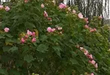 木芙蓉,锦葵科木槿属落叶灌木或小乔木。小枝上有细绒毛;叶片为卵状心形,托叶为披针形,常早落;花单生,花萼为钟形,花冠初为白色或淡红色,后逐渐变为深红色;果实为扁球形,有淡黄色的毛附着。花期8到10月。…全部>>