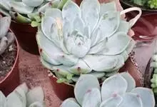 芙蓉雪莲是景天科拟石莲花属的植物。由于叶片表面覆盖着一层厚霜粉,通常呈现出白色;日照增多,温差增大后叶缘、叶尖会呈现出粉红色或橙红色。…全部>>
