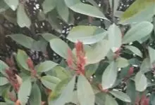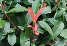 红叶石楠 是蔷薇科,石楠属杂交种,为常绿小乔木或灌木,乔木高可达5米、灌木高可达2米。叶片革质,长圆形至倒卵状、披针形,叶端渐尖,叶基楔形,叶缘有带腺的锯齿,花多而密,复伞房花序,花白色,梨果黄红色,…全部>>