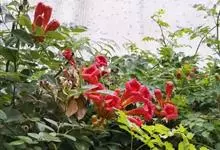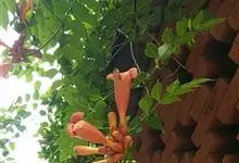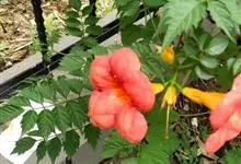 凌霄 Schum.),别名上树龙、五爪龙、九龙下海等,为紫葳科凌霄属的攀援藤本植物。其茎木质,以气生根攀附于它物之上。叶对生,为奇数羽状复叶;小叶卵形至卵状披针形,边缘有粗锯齿;顶生疏散的短圆锥花序,…全部>>