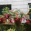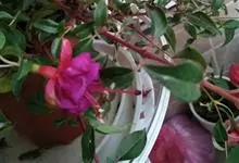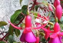 倒挂金钟是柳叶菜科倒挂金钟属亚灌木植物。茎直立,多分枝;幼枝带红色,被短柔毛与腺毛,老时渐无毛;叶对生,卵形或窄卵形,脉常带红色;常带红色,被短柔毛与腺毛;花筒红色,筒状钟形,…全部>>