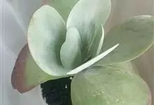 唐印为景天科伽蓝菜属的多年生肉质草本植物。植株中型,株高50厘米,宽20厘米,多分枝;叶片肉质,对生,卵形,全缘,先端钝圆,叶片淡绿色至灰绿色,表面被有厚厚的白粉,光照充足时,叶缘呈红色;圆锥花序,…全部>>