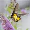 荧光裳凤蝶是凤蝶科裳凤蝶属的一种大型蝴蝶,该物种共有3个亚种。该蝶飞翔的时候姿态优美,前翅黑色,后翅金黄色和黑色交融的斑纹在阳光照射下金光灿灿,显得华贵美丽。幼虫寄主为多种马兜铃属的植物,取食马兜铃…全部>>