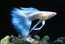 孔雀花鳉 ,俗名孔雀鱼,也称为凤尾鱼、彩虹花鳉、虹鳉、古比鱼等,是花鳉科花鳉属的一种热带鱼,雌雄鱼的体型和色彩差别较大,成年雄鱼身体瘦小,体长3-4厘米,体色绚烂多彩、体型优美;成年雌鱼体长5厘米…全部>>