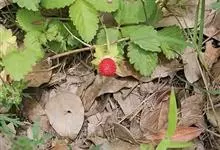 蛇莓 Teschem.),别名三爪凤、龙吐珠、东方草莓等,为蔷薇科蛇莓属的多年生草本植物。其根茎短,粗壮;匍匐茎多数;小叶片倒卵形至菱状长圆形;托叶窄卵形至宽披针形;花单生于叶腋,花瓣倒卵形,…全部>>