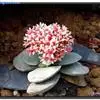 叶子表面宽厚,富肉质感且带有磨纱质感,看像石头质地;开红色小花,生于植株顶部,倒伞形密生,形状像花球一样。 全部>>