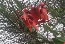 鹦哥花是豆科刺桐属植物,小乔木或乔木。树干和枝条具皮刺。羽状复叶,叶柄平滑,顶生小叶近肾形,侧生小叶斜宽心形,两面无毛。总状花序生于先端叶腋,花鲜红色,大,具花梗,苞片单生,卵形,花萼陀螺形,花冠红…全部>>
