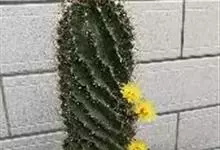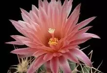 仙人球花 仙人掌科,仙人球属。植株单生或成丛。幼株球形,老株长成圆筒状,高可达75厘米,直径12-15厘米。球体暗绿色,具棱11-12。刺锥状,黑色,长1-1.5厘米。花着生于球体侧方,大型嗽喇叭状…全部>>