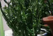 筒叶花月,是景天科青锁龙属的多年生草本植物。植株多分株,灌木状,茎较粗壮,圆柱形,表皮灰褐色;叶片肉质,互生,呈圆筒状,簇生于茎或分枝顶端,叶端呈斜截形,截面为椭圆形;花呈星状,淡白色;花期秋季。…全部>>