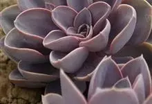 紫珍珠是景天科石莲花属的多年生肉质草本植物。植株中小型;叶片肉质,匙形,呈莲座状紧密排列;叶片粉紫色,叶缘呈粉白色,光照充足时颜色亮丽,不足时叶色会呈现深绿色或灰绿色,叶面光滑,被轻微白粉,…全部>>