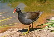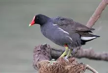 黑水鸡:是鹤形目、秧鸡科的鸟类,共有12个亚种。中型涉禽,体长24-35厘米。嘴长度适中,鼻孔狭长;头具额甲,后缘圆钝;嘴和额甲色彩鲜艳。翅圆形,第2枚初级飞羽最长,或第2枚和第3枚初级飞羽等长,…全部>>