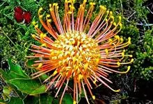 帝王花,山龙眼科帝王花属多年生常绿灌木植;茎干粗壮,叶色翠绿光亮;花朵呈圆球状;其苞片有的完全打开,使花朵呈扁平状;有的则呈半闭合状态,使花朵相对修长,…全部>>