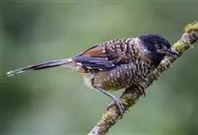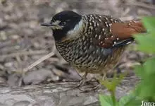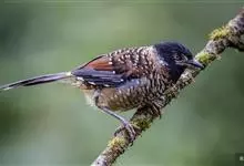 眼纹噪鹛为画眉科噪鹛属的鸟类。中型鸟类,体长30-34厘米。头、颈黑色,脸、眉纹和颏茶黄色,上体棕褐色满杂以白色、黑色和皮黄色斑点,飞羽具白色端斑,尾具白色端斑和黑色亚端斑。喉黑色,胸棕黄色具黑色横斑。…全部>>