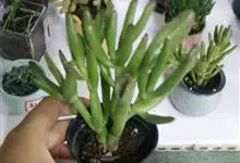 筒叶花月,是景天科青锁龙属的多年生草本植物。植株多分株,灌木状,茎较粗壮,圆柱形,表皮灰褐色;叶片肉质,互生,呈圆筒状,簇生于茎或分枝顶端,叶端呈斜截形,截面为椭圆形;花呈星状,淡白色;花期秋季。…全部>>