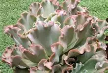 女王花笠,又名扇贝石莲花、女王花舞笠,是景天科拟石莲花属的多肉植物。由美国加利福尼亚州的育种师Dick Wright于1964年培育。特征是呈大波浪状褶皱的红色叶缘和气质高贵的粉紫色调。…全部>>