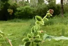 苍耳是菊科苍耳属一年生草本植物。苍耳茎被灰白色糙伏毛;叶三角状卵形或心形,边缘有不规则的粗锯齿,下面苍白色;雄头状花序球形,雄花多数,花冠钟形,雌头状花序椭圆形,内层囊状,…全部>>
