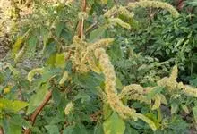 反枝苋是苋科苋属的一年生草本植物。株高达1米;茎密被柔毛;叶菱状卵形或椭圆状卵形,先端锐尖或尖凹,两面及边缘被柔毛,下面毛较密;穗状圆锥花序,顶生花穗较侧生者长;花被片长圆形或长圆状倒卵形,…全部>>