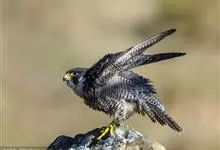 游隼yóu sǔn:是隼科、隼属的中型猛禽,共有18个亚种。体长41-50厘米。翅长而尖,眼周黄色,颊有一粗著的垂直向下的黑色髭纹,头至后颈灰黑色,其余上体蓝灰色,尾具数条黑色横带。…全部>>