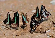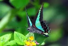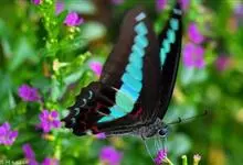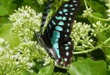 青带凤蝶Graphium sarpedon ,又名青凤蝶,是最普遍的中型凤蝶,飞行速度很快。青带凤蝶的翅膀中央有许多浅蓝色的斑点,很整齐地排列成一条直线。这些斑点由上而下逐渐变大,就像一条青色的带子。全部>>