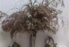 蓬莱松是天门冬科、天门冬属多年生丛生草本植物。宿存,圆柱形肉质根,纵截面为绿色和表面灰色。植株高可达3米。茎呈圆柱形或近四边形,底部木质化,具有灰色或灰褐色。幼嫩的茎在每个节上都被紫绿色鳞片包,…全部>>