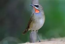 红点颏:是鸟纲、鹟科的鸣禽。又名西伯利亚歌鸲。体长14-17厘米,体重16-27克。雄鸟头部、上体主要为橄榄褐色。眉纹白色。颏部、喉部红色,周围有黑色狭纹。胸部灰色,腹部白色。雌鸟颏部、喉部不呈赤红色,…全部>>