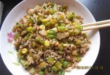 牛肉炒饭需要的原料有牛肉、青椒、小米椒、葱、米饭、料酒、酱油、淀粉、盐、胡椒粉,…全部>>