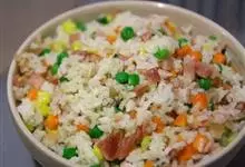 什锦炒饭是一道色香味俱全的名点,以江苏扬州的炒饭最知名。虾仁去泥肠洗净,加料酒、胡椒粉、淀粉上浆。胡萝卜洗净,切小片。蘑菇洗净、切块。将虾仁、豌豆粒、蘑菇倒入沸水锅中,焯烫至断生,捞出沥水。…全部>>